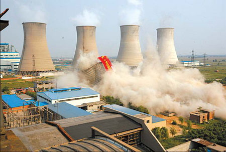 A power plant is being demolished in Xingtai, North China's Hebei Province in this September 6 2007 file photo. [China Daily]