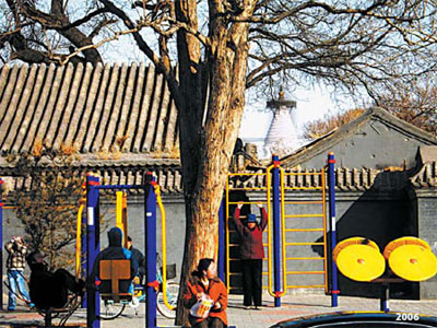 But in the eyes of ordinary residents in Beijing, like those doing morning exercises with the Hutong recreational equipment captured in 2006 by photographer Wang Wenlan's candid camera, the Olympics may not have so many seemingly profound implications.