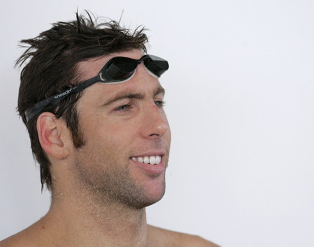 Australia's Grant Hackett smiles during a training session prior to the Beijing Olympics in Kuala Lumpur July 29, 2008. [Agencies]