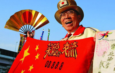 During the 5,000m competition of the 1968 Mexico Olympic Games, Yamada's "cheer up, Mexico" received an enthusiastic response from the audience. From that time on, he became a zealous cheerleader. He is famous for distributing national flags throughout the Olympic stadiums. He is confident that he will surprise the world during the Beijing 2008 Olympic Games.