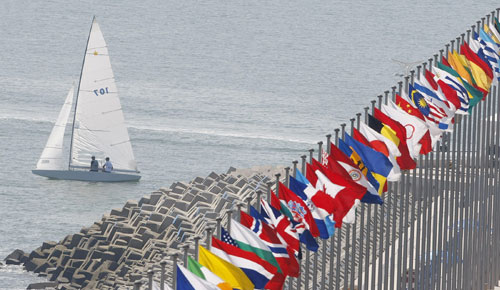 Pascal Rambeau and Xavier Rohart of France competing in the Star class train prior to the Beijing 2008 Olympic Games in Qingdao August 8, 2008. [Agencies]