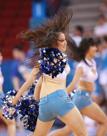 Cheerleaders perform during the Group B opener of the Beijing Olympic women's basketball event on August 9, 2008.[www.sina.com]