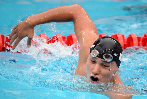 Japan's Takeshi Matsuda leaves the pool after the men's 200m butterfly swimming semifinal at the National Aquatics Center in the 2008 Beijing Olympic Games on August 12, 2008. Michael Phelps of the United States wins men's 200m butterfly at the Beijing Olympics, Takeshi Matsuda finishes at the third place. [Agencies]