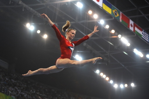 United States' Bridget Sloan competes on the balance beam during the women's qualification of the artistic gymnastics event of the Beijing 2008 Olympic Games in Beijing on August 10, 2008.[Agencies]
