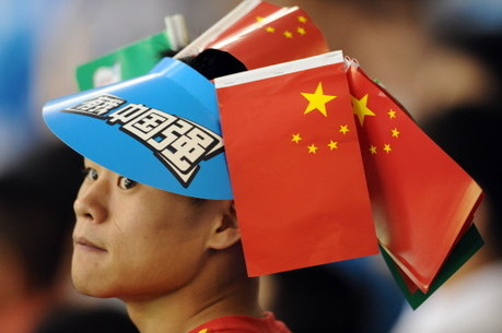 A Chinese fans attends the men's -81kg judo matches of the 2008 Beijing Olympic Games on August 12, 2008 in Beijing. [Agencies]