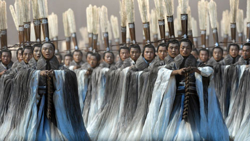 Artists perform during the opening ceremony of the 2008 Beijing Olympic Games at the National Stadium, also known as the "Bird's Nest", on August 8, 2008. The three-hour show at Beijing's iconic "Bird's Nest" national stadium was set to see more than 15,000 performers showcase the nation's ancient history and development. [Agencies]