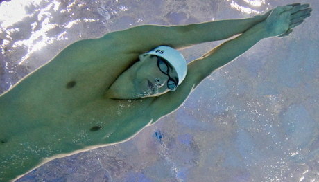 This picture taken on August 13, 2008 shows an underwater photograph of US swimmer Michael Phelps competing during the men's 200 meter individual medley heat at the National Aquatics Center during the 2008 Beijing Olympic Games in Beijing. [Agencies]