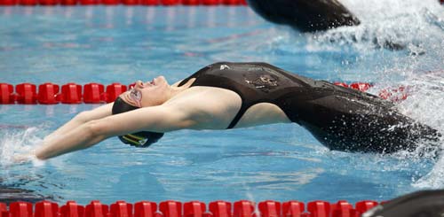 Kirsty Coventry of Zimbabwe starts her women's 200m backstrokeswimmingsemifinal at the National Aquatics Center during the 2008 Beijing Olympics, August 15, 2008. Coventry won the final. [Agencies]