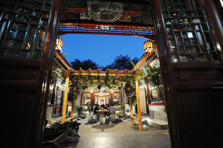 The retired doctor prepares tea all day for visitors who drop in at her courtyard. They can either sit around a porcelain table sipping tea in the soothing shade of a grape trellis, or, like US tourists Teresa Quigley and Anne Dalton, sit on an old-style Chinese bed and drink the tea served by Quigley's son in the traditional Chinese way.