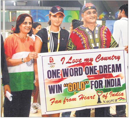 Omprakash Mundra with wife PREM with Sania Mirza,Tennis Star of India during Beijing Games 2008.