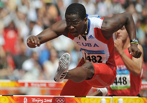 Cuba's Dayron Robles competes during the first round of the men's 110m hurdles at the "Bird's Nest" National Stadium during the 2008 Beijing Olympic Games on August 18, 2008. [Agencies]