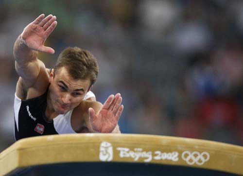 Leszek Blanik of Poland competes in the men's vault final during the artistic gymnastics competition at the Beijing 2008 Olympic Games August 18, 2008. [Agencies]