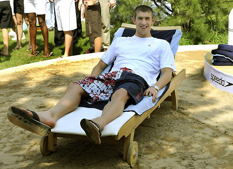 US winner of eight swimming gold medals Michael Phelps attends a photocall for the Speedo Athlete Media Day during the 2008 Beijing Olympic Games on August 19, 2008.[Agencies]