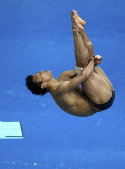 He Chong of China competes in the men's 3m springboard diving final at the Beijing 2008 Olympic Games August 19, 2008.[Agencies]