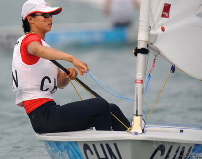 Sailor Xu Lijia of China races to her bronze medal in the Laser Radial class at the 2008 Beijing Olympic Games on August 19, 2008 in Qingdao, China. [Agencies]