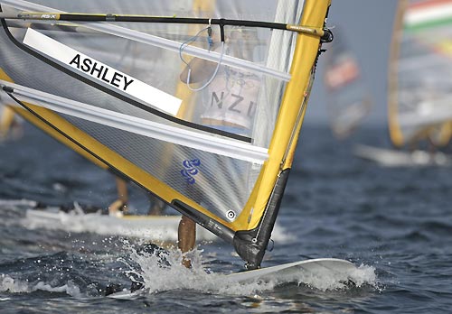 Tom Ashley of New Zealand approaches the down wind mark of race three of the RS: X men's windsurfing competition at the Beijing 2008 Olympic Games in Qingdao, Shandong province in this August 12, 2008 file photo. Ashley won gold in the men's RS:X class at the Beijing Olympics. [Agencies]