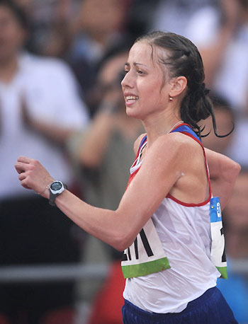 Russia's Olga Kaniskina competes during the women's 20km walk at the National Stadium in the 2008 Beijing Olympic Games on August 21, 2008. Russia's Olga Kaniskina won ahead of Norway's Kjersti Tysse Platzer and Italy's Elisa Rigaudo.[Agencies]
