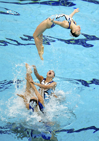 Japan's team performs in their synchronised swimming team free routine final at the Beijing 2008 Olympic Games August 23, 2008. [Agencies]