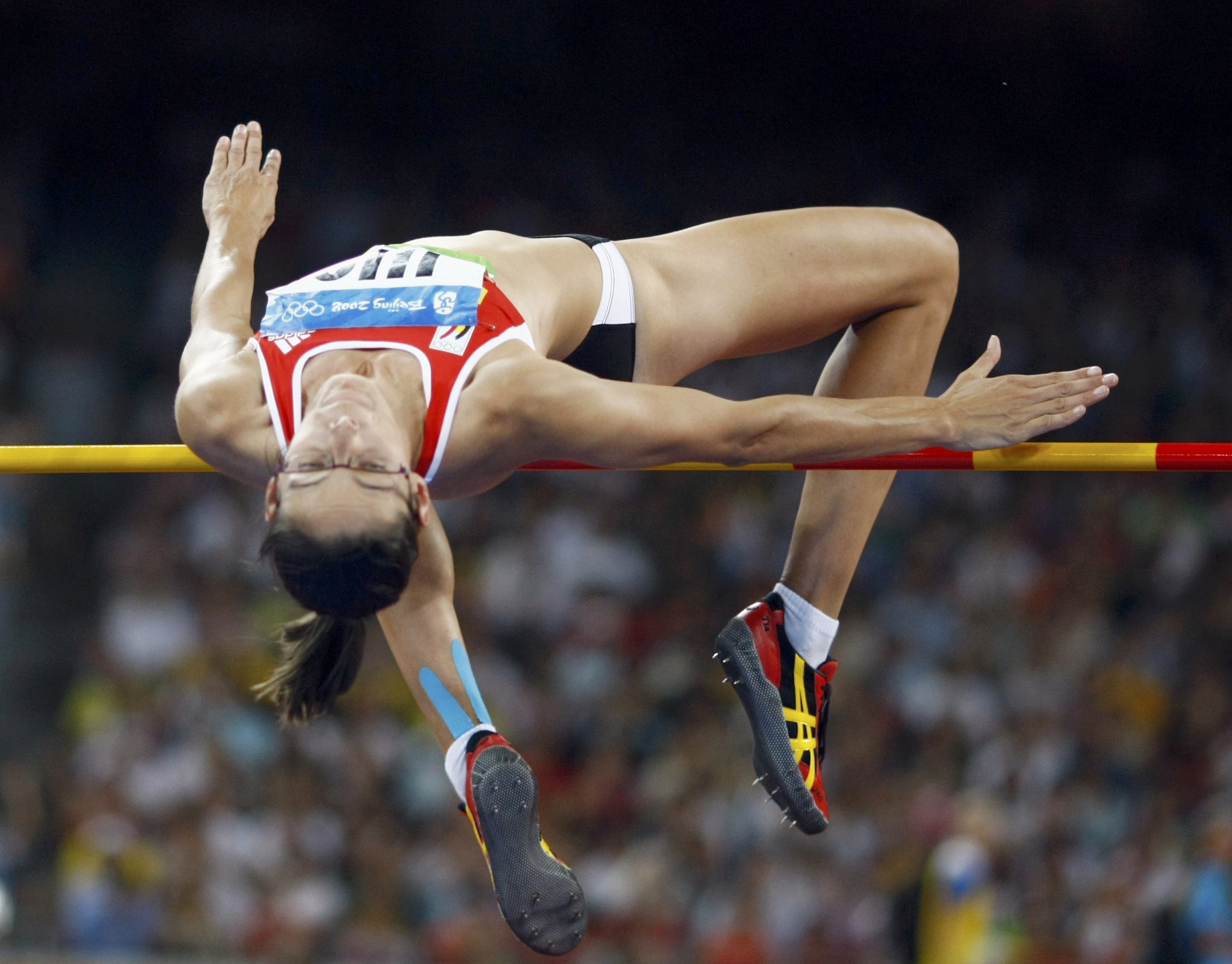 Tia Hellebaut of Belgium competes during the women's high jump final of the athletics competition in the National Stadium at the Beijing 2008 Olympic Games August 23, 2008.  [Agencies]