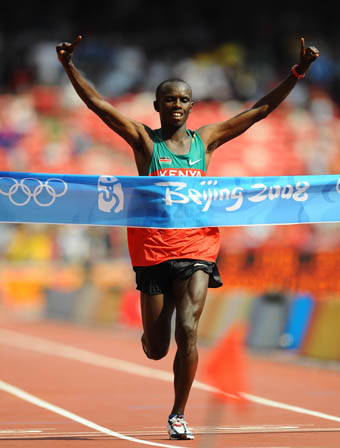After dominated the distance running in the Bird's Nest, the 21-year-old Kenyan won the race for African in a time of two hours six minutes and 32 seconds, breaking the Olympic record set by Carlos Lopes of Portugal at the 1984 Games in Los Angeles by two minutes 49 seconds.