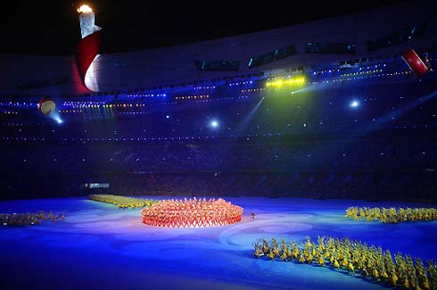 Performers dance during the closing ceremony for the 2008 Beijing Olympic Games at the National Stadium also know as the "Bird's Nest" on August 24, 2008. [Agencies]