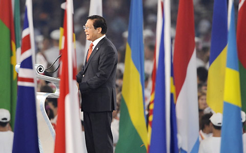 The chairman of Beijing Organizing Committee of Beijing Olympic Games , Liu Qi, speaks during the closing ceremony for the 2008 Beijing Olympic Games at the National Stadium also know as the "Bird's Nest" on August 24, 2008. [Agencies]