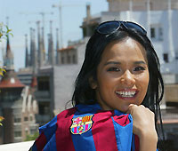 Chinese singer Wei Wei, the image ambassador for China women's soccer, joined Barcalona FC stars Lionel Messi, Deco, Carles Puyol to finish the shooting of this music video in Spain. Wei's three sons also participated in the performance. |