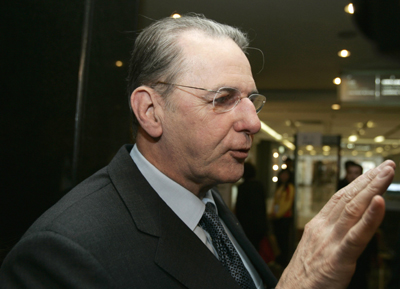 International Olympic Committee (IOC) President Jacques Rogge gestures to journalists ahead of the XVI Association of National Olympic Committees General Assembly in Beijing April 9, 2008. [Agencies]