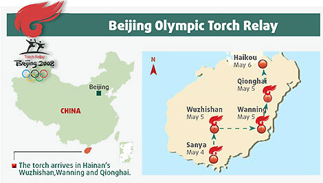 Route of Beijing Olympic torch relay in South China's Hainan Province. [China Daily]