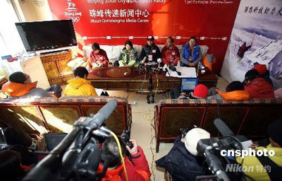The squad to carry the flame atop Mount Qomolangma is announced at a press conference held in the Qomolangma media center May 6, 2008. [cnsphoto]