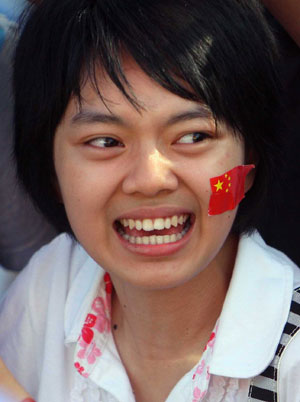 A girl is waiting for the arrival of Olympic torch in Haikou, south China's Hainan Province, on May 6, 2008. [Xinhua]