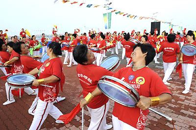 Drummers perform at the Olympic torch relay opening ceremony in Qingdao, Shandong Province, July 21, 2008. [Xinhua]