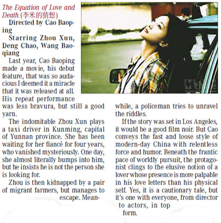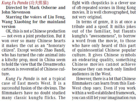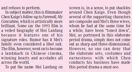 ![]() This has been an uneven year for Chinese cinema. On the one hand box-office revenues are expected to reach a new high, on the other hand mediocrity still reigns supreme. This makes it a daunting task to pick 10 shining examples of cinematic excellence. The film industry took big strides considering all the things that happened in 2008 and might conceivably have hampered its clout, such as the Sichuan earthquake and the Beijing Olympics. We know big news events that keep audiences glued to the tube are not good for the cinema, but we cannot be certain whether an economic downturn will do more good or harm. Judging by the year-end crowds at the nation's multiplexes, however, people are unfazed by bad news, or perhaps, any news can be turned into a good excuse for spending two hours in a dark hall with hundreds of others. Ah, the magic of the celluloid has not died away. Not yet! The following 10 releases were not selected on artistic merit, but by the equally elusive yardstick of "enjoyability". We embrace the big moneymakers instead of snobbishly snubbing them.