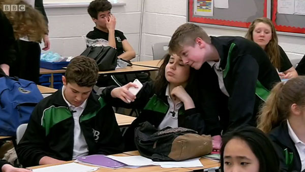 The screenshot shows students's bad behavior at class in the BBC documentary,Are Our Kids Tough Enough? Chinese School. |