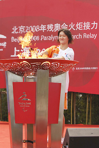 The Paralympic torch was carried through Shanghai Monday by some former top athletes.