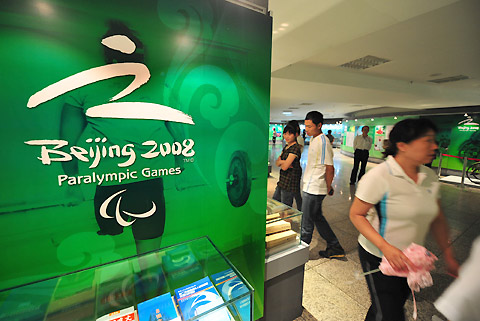The exhibition entitled "One World, One Dream"on the Beijing Paralympic Games was unveiled in China Millennium Monument Museum on September 1,2008. [Xinhua]