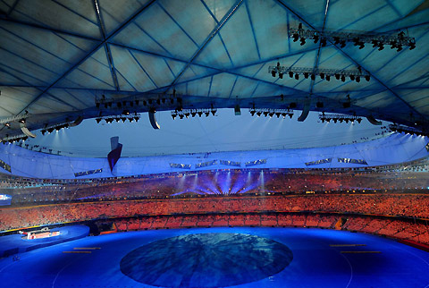 A general view of the Chinese National Stadium, dubbed "Bird's Nest", which hosts the Beijing Paralympic Games September 6, 2008. [Xinhua]