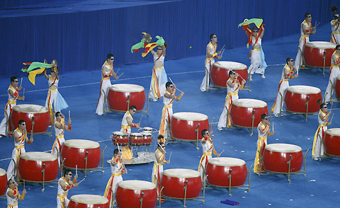 The lights in the stadium began to change into different colors as the last song for the performance "Beijing, Beijing, I Love Beijing" echoed from the stage.