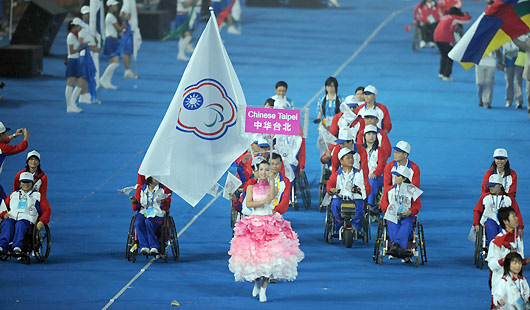 A presenter introduces Chinese Taipei's Paralympic delegation into the National Stadium, also known as the "Bird's Nest", in Beijing, September 6, 2008. [Xinhua]