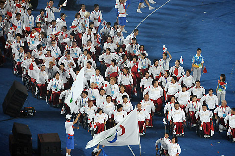 Members of the Japanese Paralympic delegation parade into the National Stadium, September 6, 2008. [Xinhua]