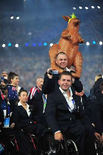 Members of the Australian Paralympic delegation parade into the National Stadium, also dubbed "Bird's Nest", in Beijing, September 6, 2008. [Xinhua]