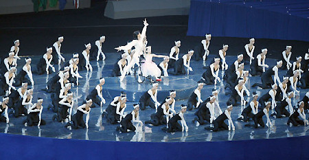 Li Yue (C), a 12-year-old victim of May 12 Wenchuan earthquake, stages a ballet at the opening ceremony of Beijing 2008 Paralympic Games in the National Stadium, September 6, 2008. [Xinhua]