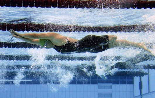 Natalie du Toit of South Africa swims during the women's 100m Butterfly S9 heat at the 2008 Paralympics at the National Aquatics Centre, also known as the Water Cube, in Beijing September 7, 2008. [Agencies]