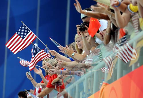 US fans cheer at the National Aquatics Center on September 7, 2008. [Xinhua]