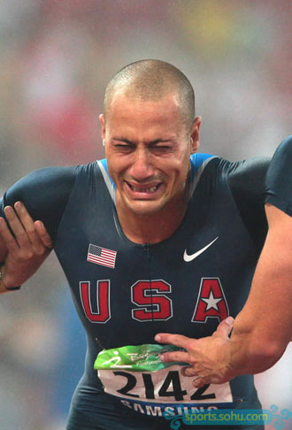 Marlon Shirley of the US crys as he has to quit the competition after he fell in the final of the 100m T44 during the 2008 Beijing Paralympic Games at the National Stadium in the Chinese capital on September 9, 2008. [Sohu.com]
