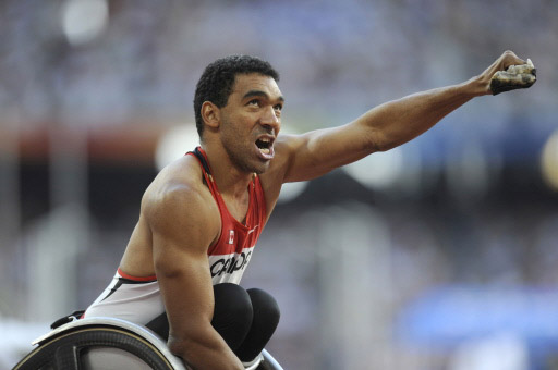 Dean Bergeron of Canada celebrates winning gold in the final of the 200m T52 race during the 2008 Beijing Paralympic Games at the National Stadium in the Chinese capital on September 10, 2008. [Agencies]