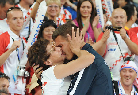Branimir Budetic of Croatia shares a moment with his mother after finishing second during the final of the men's javelin F11-12 classification event at the 2008 Beijing Paralympic Games in Beijing on September 10, 2008. [Agencies]