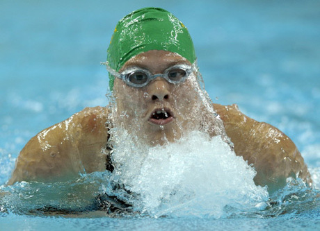 Natalie Du Toit of South Africa swims to win the women's 200m individual medley SM9 during the 2008 Beijing Paralympic Games at the National Aquatics Center in Beijing on September 11, 2008. Natalie Du Toit won with a new world record of 2:27.83. [Agencies]