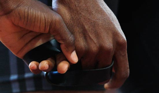 A runner holds hand with his guide at the National Stadium in Beijing on September 13, 2008[Xinhua]