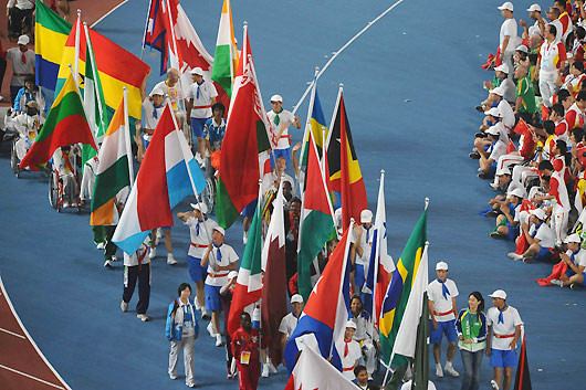 Paralympic athletes enter the National Stadium, better known as the "Bird's Nest" on September 17, 2008. [Xinhua]